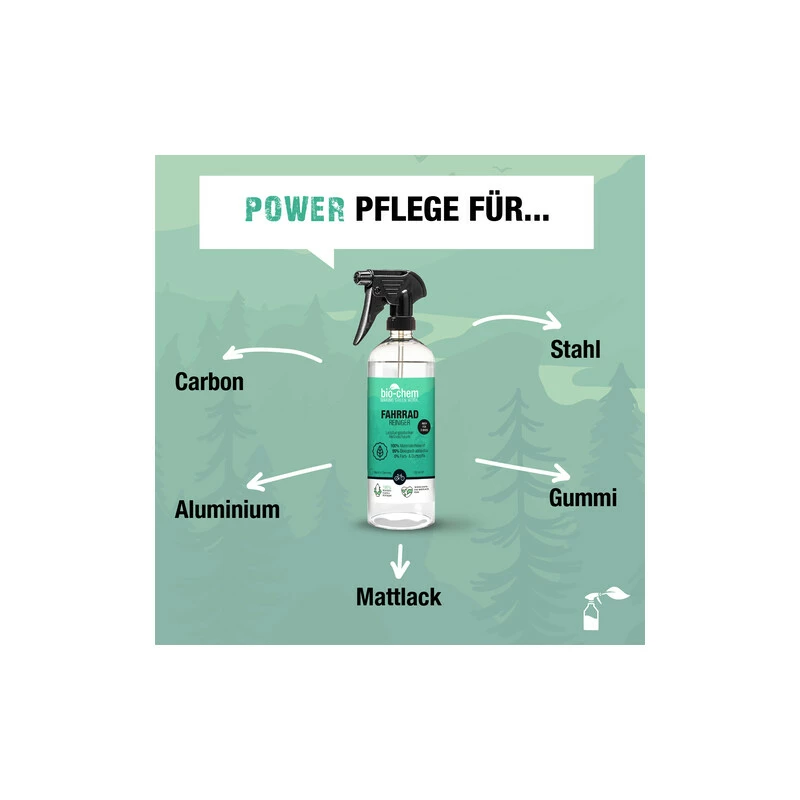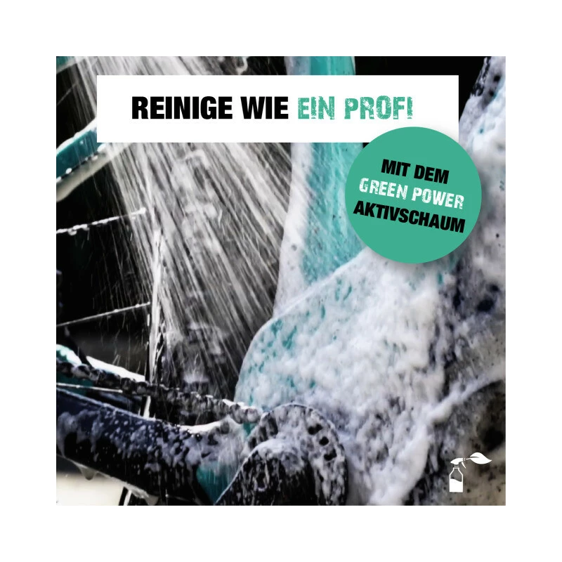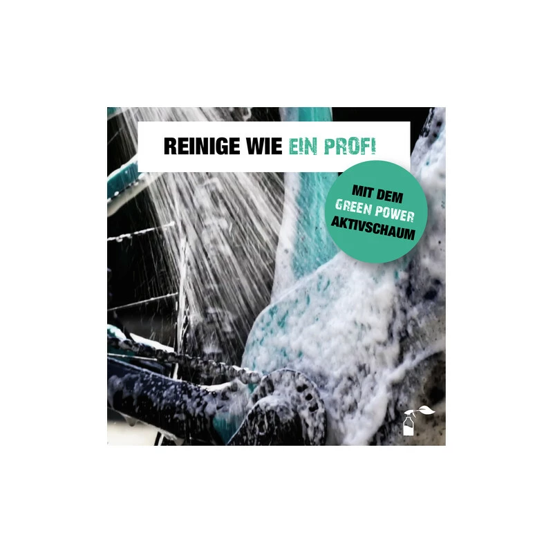 Einsprühen, wenige Minuten einwirken lassen und mit Wasser abspülen. Schon glänzt Dein Bike wie neu