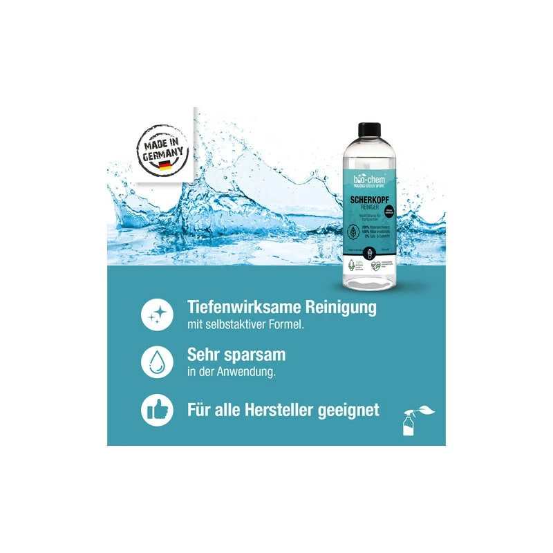 Der Scherkopfreiniger von bio-chem ist die perfekte Lösung, wenn Du zukünftig auf den Kauf teurer Reinigungskartuschen für Deinen Rasierer verzichten möchtest. Ist es Dir nicht auch ein Dorn im Auge immer eine Kartusche mit gebrauchter Flüssigkeit wegzuschmeissen? Selten ist es so einfach Geld und unnötigen Plastikmüll zu sparen. Nutze den bio-chem Scherkopfreiniger für ein hervorragendes und materialschonendes Reinigungsergebnis. Einfach die gebrauchte Kartusche ausspülen und mit frischer Flüssigkeit auffüllen. Schon kann es mit der Reinigung losgehen.