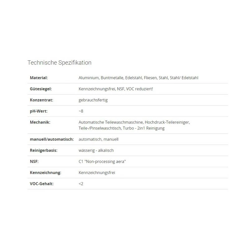 Reinigt Aluminium, verzinkte Oberflächen und Buntmetalle genauso wie Stahl/Edelstahl und Kunststoff