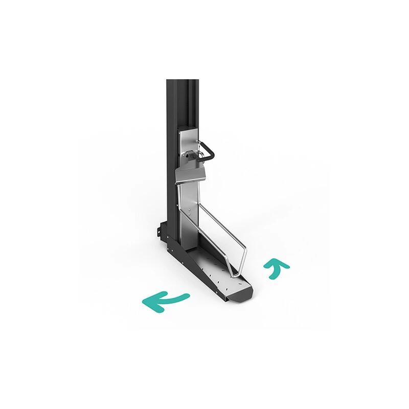 Durch die Schwenkvorrichtung kann das Fahrrad zur Seite geklappt werden und noch mehr Platz gespart werden