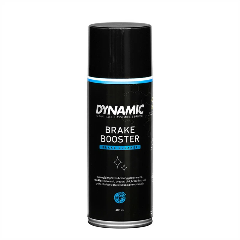 Verbessere deine Bremsleistung mit dem Dynamic Brake Booster. Dieser Bremsenreiniger hilft, das Quietschen deiner Bremsen drastisch zu reduzieren und entfernt schnell Schmutz, Dreck, Öl und andere Verunreinigungen. Saubere Bremsen und Bremsbeläge sind leistungsfähiger und langlebiger.Brake Booster ist ein Bremsenreiniger für deine Scheiben- und Felgenbremsen. Um die beste Bremsleistung zu erzielen, müssen deine Bremsen frei von Verunreinigungen sein.Er entfernt schnell und zuverlässig Schmutz, Öl und andere Verunreinigungen. Das starke Lösungsmittel entfernt selbst die hartnäckigsten Verschmutzungen, ohne die Teile der Bremsen anzugreifen. Die Formel ist sicher in der Verwendung auf allen Materialien wie Gummi, Kunststoff, Metall und Karbon. Das einfach anzuwendende Spray hilft, den Reiniger gleichmässig auf die Bremsen aufzutragen. Brake Booster trocknet schnell und hinterlässt keine Rückstände.Brake Booster kann für alle Bremsenteile verwendet werden, einschliesslich Scheibenbremsen, Bremsbeläge und Bremsflanken aus Aluminium oder Karbon.Die Dose vor Gebrauch gut schütteln und einfach auf die zu reinigende Stelle aufsprühen.Es ist ebenfalls möglich, den Reiniger auf ein sauberes Tuch zu sprühen und damit die Komponenten zu reinigen.Wische die überschüssige Flüssigkeit ab und lasse den Brake Booster verdunsten bevor du los fährst.