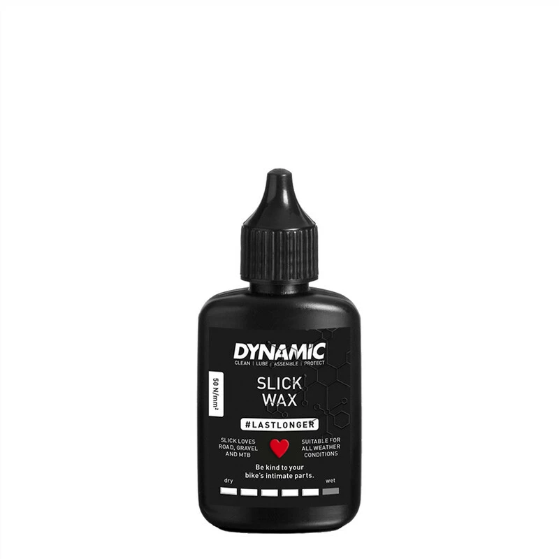 Slick Wax ist ein sehr haltbares und fortschrittliches Kettenschmiermittel. Die schnelle Pflege des Antriebsstrangs ist dank dieses biologisch abbaubaren, umweltfreundlichen Wachses ganz einfach. Slick Wax schützt deine Kette vor Korrosion, Verschleiss und dem Anhaften von Schmutz. Das Wachs sorgt ausserdem dafür, dass die Kette leicht und leise läuft und der Antriebsstrang sauber und trocken gehalten wird.Eine von Öl verklebte Kette gehört dank Slick Wax der Vergangenheit an. Trage das Wachs einfach auf eine saubere und trockene Kette auf und du wirst deinen Antriebsstrang nur noch äusserst selten komplett entfetten müssen.Slick Wax wird bei Bedarf erneut aufgetragen und Schmutz oder überschüssiges Wachs wird einfach mit einem Tuch oder einer Bürste entfernt.Dynamic Slick Wax ist für alle Wetterbedingungen und alle Radsportdisziplinen geeignet. Ob fürs Rennrad, MTB, Gravelbike oder E-Bike, du benötigst nur ein Produkt um deine Kette perfekt zu pflegen. Durch die Verwendung dieses Wachses hält dein Antriebsstrang bis zu 40% länger. Darüber hinaus haftet Slick Wax länger an deiner Kette als andere Kettenwachse.
