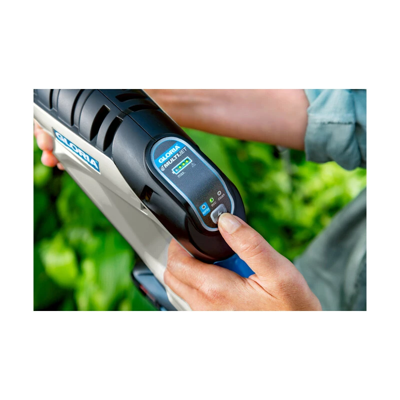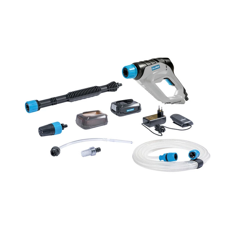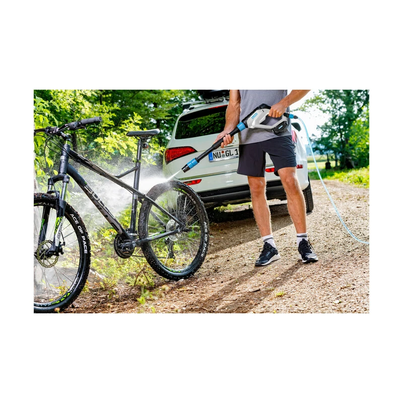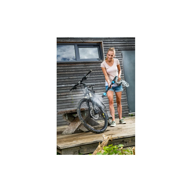 Im Basis-Kit ist die MultiJet 18V ein Reinigungsgerät, das mit einer 4-in-1 Multifunktionsdüse und einer 40 cm Verlängerungslanze ausgestattet ist. Der Betriebsdruck lässt sich zwischen 2,5 und 25 bar in drei Stufen regulieren, (Spray, Eco, Clean).