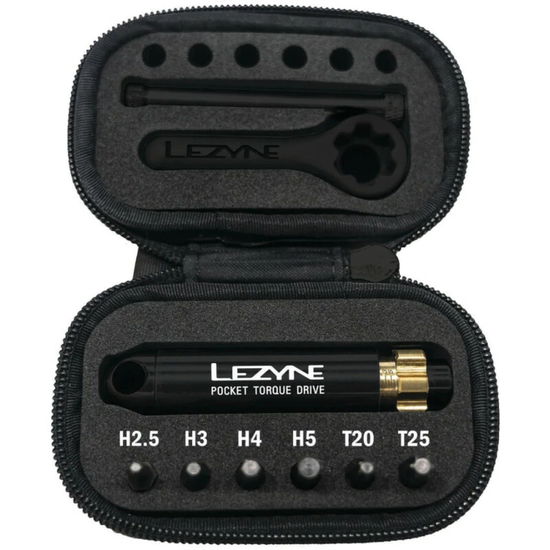 Der Pocket Torque Drive ist ein innovativer, schön gestalteter Drehmomentschlüssel mit klassischem Lezyne-Design und überlegener Funktionalität. Es handelt sich um ein vorkalibriertes Torsionsratschen-Werkzeug, das aus langlebigem, leichtem, maschinell bearbeitetem Aluminium besteht. Bei abgenommenem Griff lässt sich der Schlüssel in einem kompakten, geformten EVA-Koffer verstauen und ist mit sechs gehärteten Stahlbits ausgestattet, darunter 2,5-, 3-, 4- und 5-MM-Sechskantbits sowie T20- und T25-Torx-Bits. Der mitgelieferte Composite Matrix-Schlüssel erleichtert die Einstellung des Drehmoments des Schlüssels. Er ist zwischen 2 – 6 Nm in 0,5 Nm-Schritten einstellbar und verfügt über einen magnetischen Bithalter. Dies ist der ultimative tragbare Fahrrad-Drehmomentschlüssel für den professionellen Einsatz in der Werkstatt oder für Anpassungen während der Fahrt.