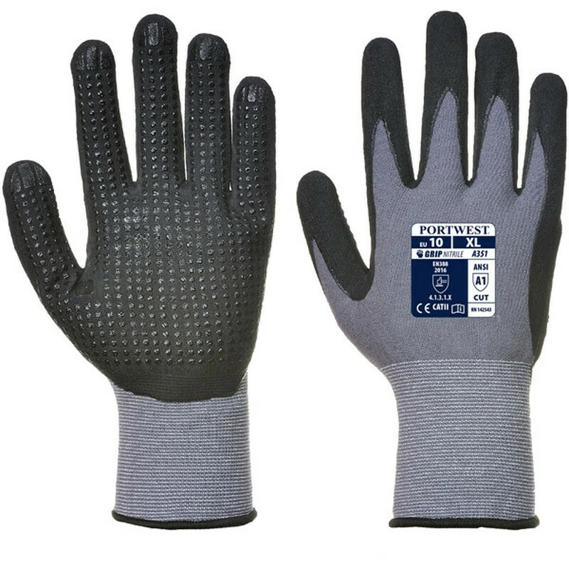 Einsatzgebiete: Umgang mit fettigen Gegenständen Schutzhandschuhe, aus gestricktem Polyamid mit Nitrilbeschichtung und Noppen, gute Griffigkeit auch bei Nässe, Optimales Tastempfinden, Rutschfest und widerstandsfähig