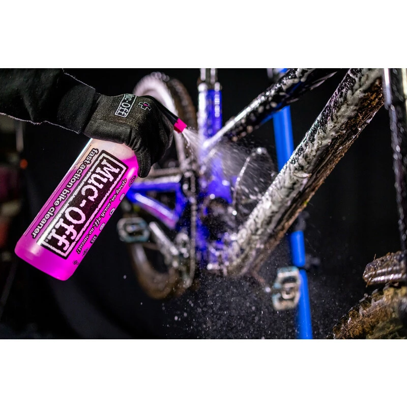 Sprühe ihn einfach auf und er beginnt sofort damit, Dein verschmutztes, matschiges Bike zu säubern. Der Muc-Off Fahrradreiniger basiert auf dem neuesten Stand der Nano-Technologie, die Schmutz schneller und effektiver als herkömmliche Reinigungsmittel löst. Er kommt ohne den Zusatz von fiesen, aggressiven Chemikalien aus und hinterlässt Dein Bike sauber, glänzend und ist bereit für den nächsten Einsatz.