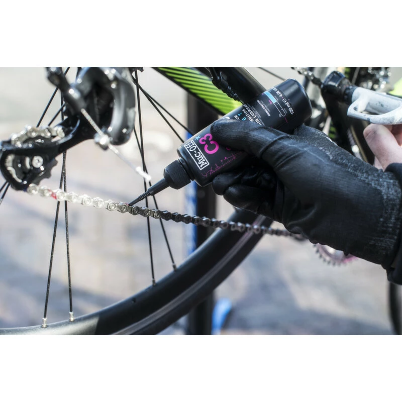 Das C3 Ceramic Lube gibt es als Wet- und Dry-Version. Beide eignen sich für lange Distanzen für Marathonisti, Cyclocrosser, Rennradfahrer und Mountainbiker. Durch den Keramikzusatz erreicht es nicht nur eine bessere Schmierdichte, sondern setzt auch die Reibung herab. Das C3 Wet Lube ist dank seiner hydrophoben Charakteristik gut in feuchten, nassen und schlammigen Witterungsbedingen geeignet. Das C3 Dry Lube wiederum hält in staubigen, trockenen Bedingungen Staubpartikel und Schmutz von der Kette fern, damit diese das Material nicht schädigen können.