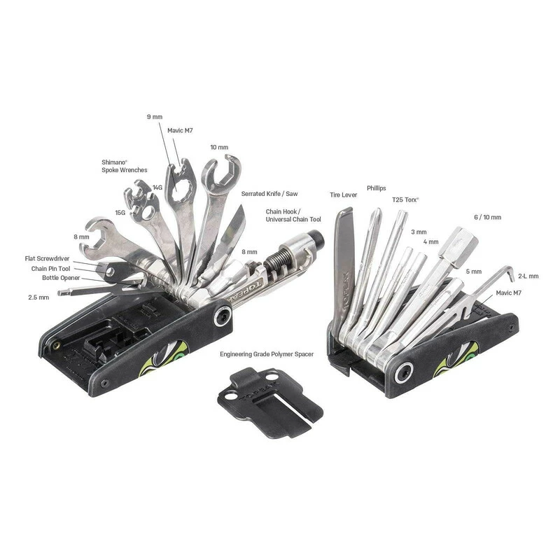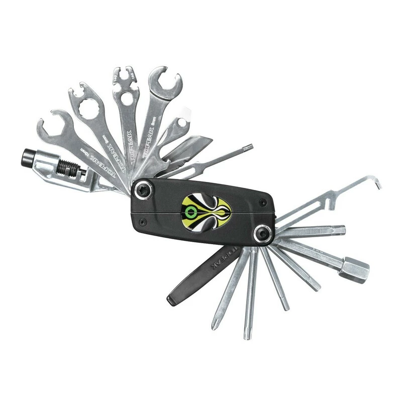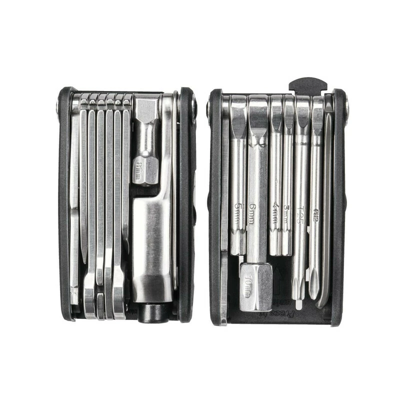 Das ALiEN™ S ist die neue streng limitierte Auflage als Sonderedition des altbewährten ALiEN™ 3 aus dem Hause Topeak. Mit 25 qualitativ hochwertigen Edelstahl-Werkzeugen bist du unterwegs für fast jede Situation gewappnet. Durch das zweiteilige Design steht dir jedes Werkzeug schnell und ohne unnötige Fummelei zur Verfügung. Die zugehörige Nylontasche sorgt für Schutz und einen unkomplizierten Transport.