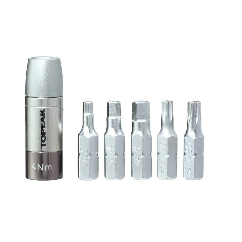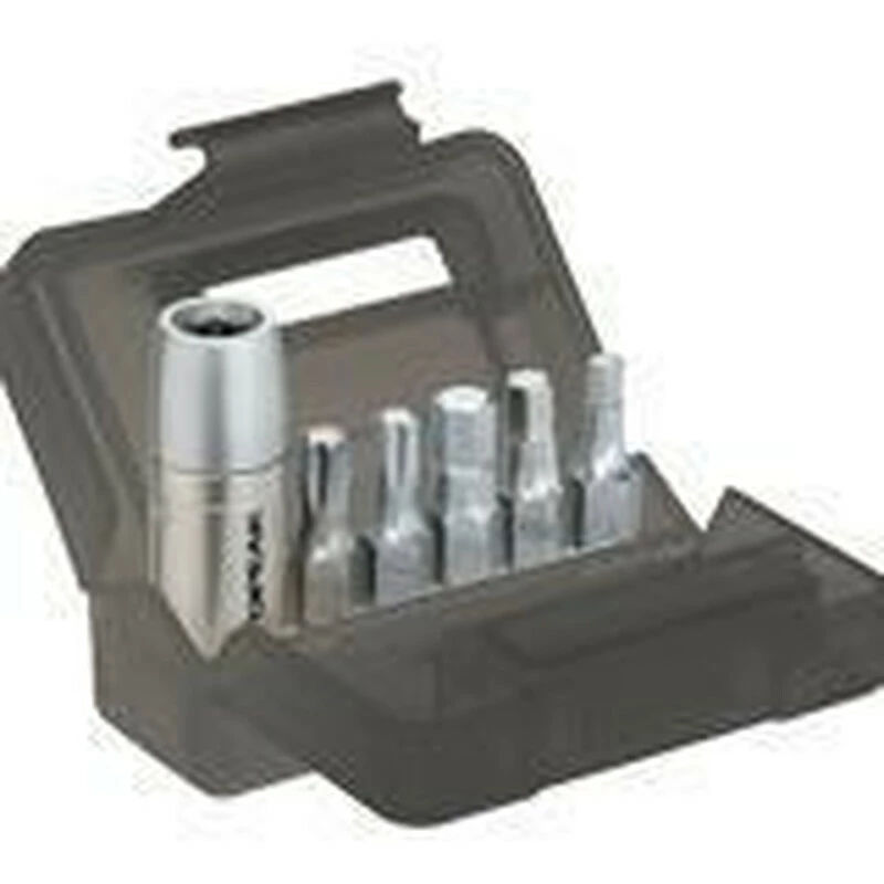 Diese super kompakte Drehmomenthülse (4 Nm, 5 Nm oder 6Nm) macht aus jedem Mini-Tool mit 5 mm Innensechskantschlüssel einen vollwertigen Drehmomentschlüssel! Das enthaltene Transport Case bietet Platz für eine Hülse und die 5 wichtigsten Bits. Mit diesem Set ist stets das richtige Anzugsmoment für Schrauben von Anbauteilen garantiert und teure Carbon Teile werden vor Beschädigung geschützt.
