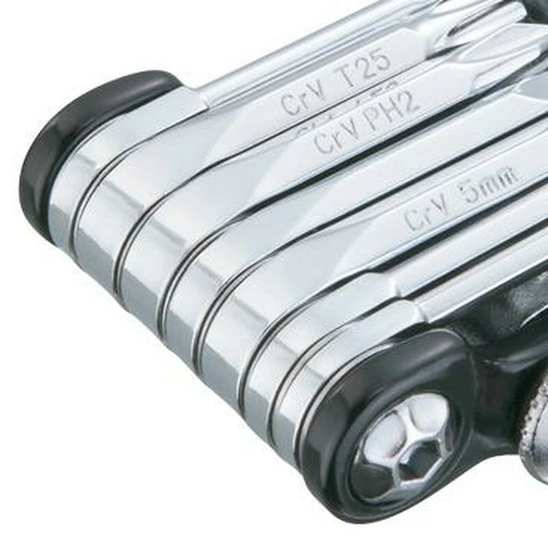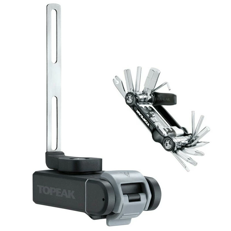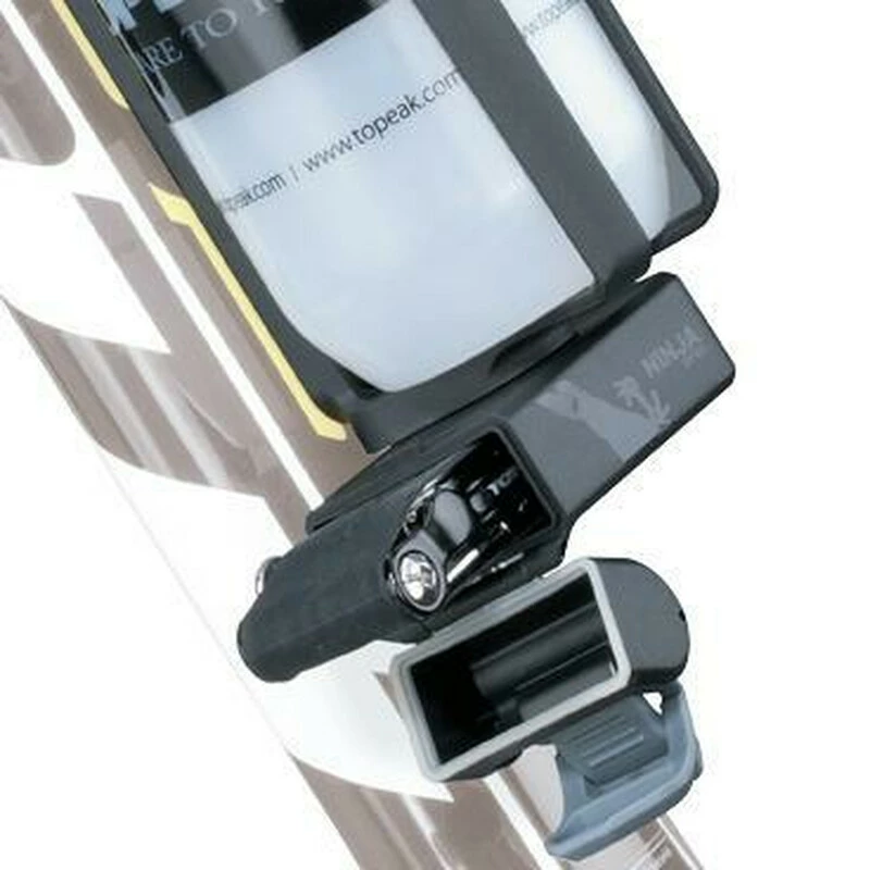 Die Ninja T Mountain Toolbox fixiert dein Minitool fest unter dem Flaschenhalter. So bist du jederzeit gewappnet und hast das wichtigste Werkzeug stets griffbereit dabei. Das integrierte Minitool „Mini 20 Pro“ verfügt über 23 Funktionen und ist durch die Rotationsmöglichkeit der Box zu beiden Seiten jederzeit gut zugänglich.