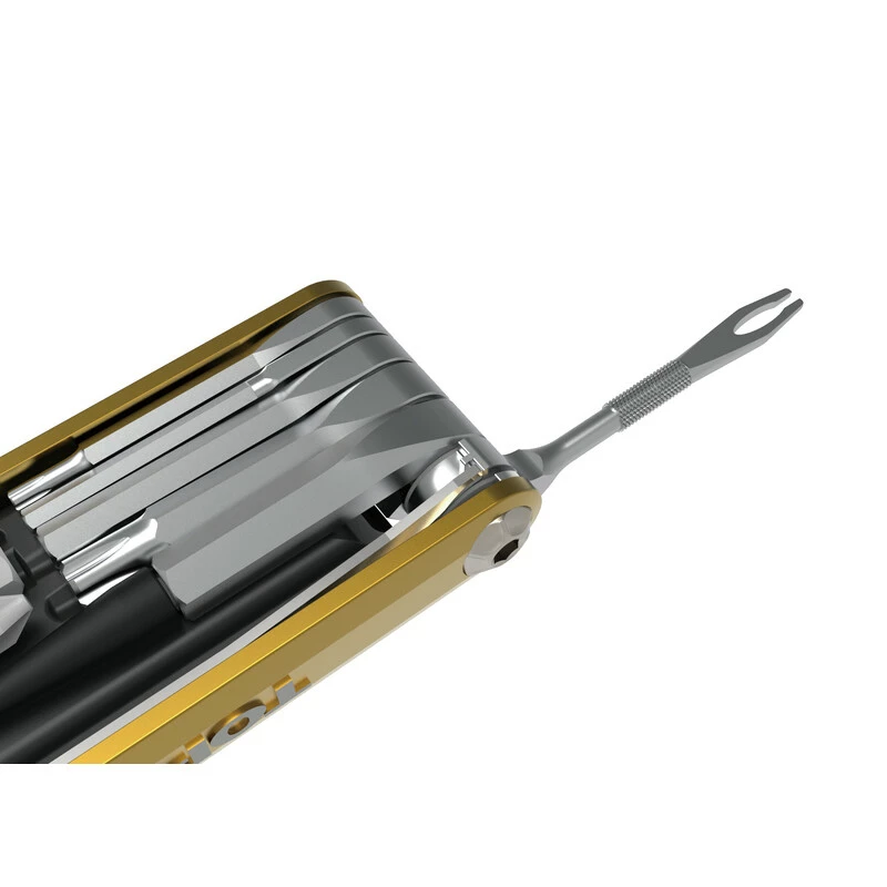 Das Tubi 18 Minitool von Topeak beinhaltet Qualitäts-Werkzeug inkl. einem Reparatur-Kit für Tubeless Reifen. So hast du die nötigsten Tools mit 18 Funktionen im kompakten Format an Bord. Das extra Fach bietet Platz für bis zu 5 Tubeless-Plugs von 3.5 mm Breite.