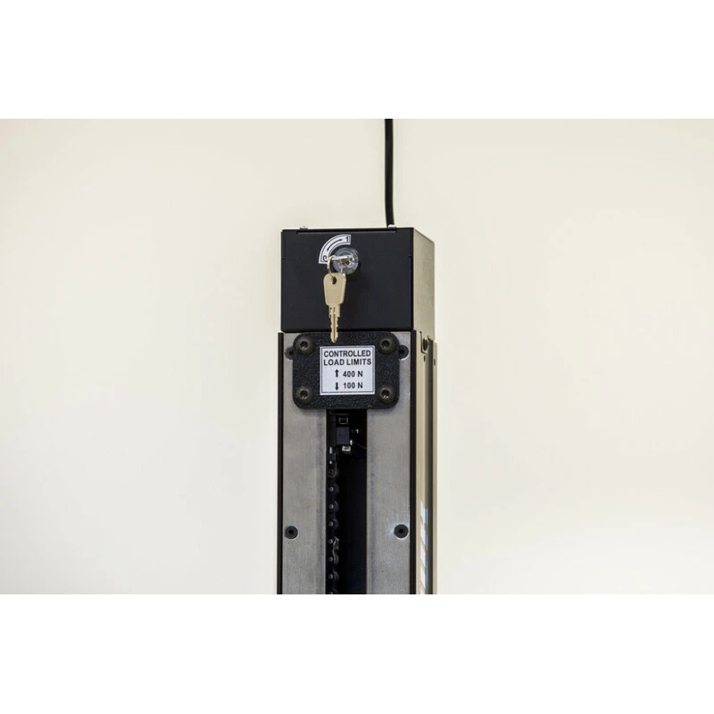 Entworfen und entwickelt, damit Techniker intelligenter und nicht härter arbeiten können. Der Ständer ist um eine hochbelastbare, einteilige Aluminiumsäule konstruiert, die eine grosse Stabilität verleiht und gleichzeitig alle Drähte im Inneren hält, so dass bei der Arbeit am Fahrrad nichts im Weg steht. Es ist stark genug, um auch die schwersten Fahrräder mit Leichtigkeit auf die gewünschte Höhe zu heben, sodass das Fahrrad immer in der ergonomischsten Position zum Arbeiten ist. Elektrischer Reparaturständer ist nicht nur leistungsstark, sondern auch smart. Es verfügt über eine stufenlose Höhenverstellung, kann aber auch ein Fahrrad automatisch per Knopfdruck anheben oder absenken. Es stoppt auch von selbst, wenn das Fahrrad den Boden erreicht. Dank der Travel-Adjust-Limiter; Sie können seinen Weg begrenzen, so dass er immer auf der gewünschten Höhe stoppt.