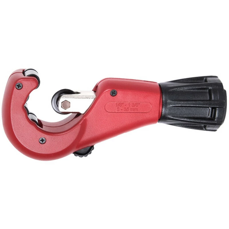 Ein einfach anzuwendender und effizienter Rohrschneider. Diesen Rohrschneider einfach aufsetzen und das Schneidrad an der gewünschten Stelle in Eingriff bringen. Dann das Werkzeug um das Rohr drehen und dabei das Schneidrad mit dem ergonomischen Drehknopf einstellen.